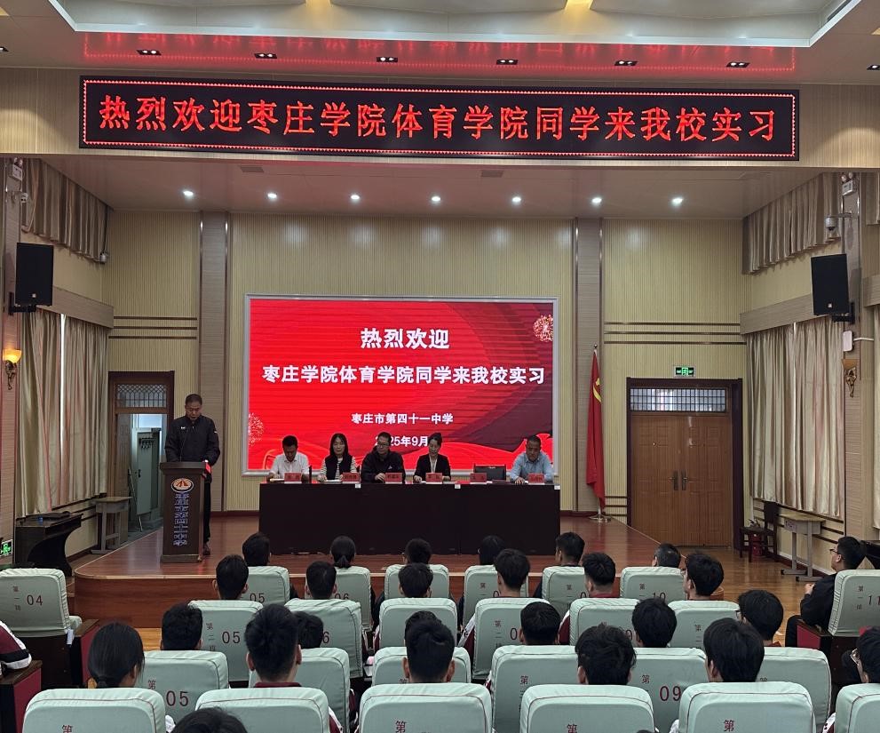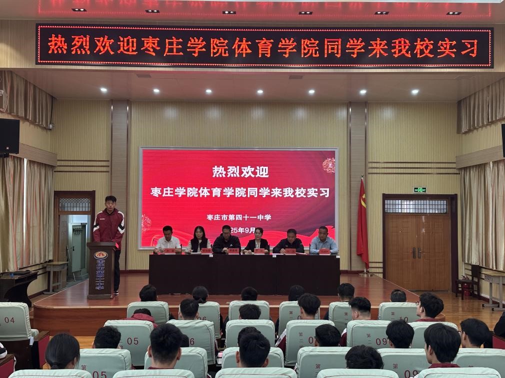 9月19日上午,永利集团304422级体育教育专业学生教育实习进校仪式暨见面会,在枣庄市第四十一中学北校区报告厅隆重举行。永利集团3044李丽院长、韩建阳副院长,枣庄市第四十一中学执行校长朱涛、副校长周勇,部分实习指导教师以及全体学生参加了会议。