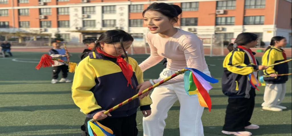 本次活动尤为亮眼的是将非物质文化遗产“鲁南花棍舞”引入中学课堂。志愿者们编排了简易花棍舞动作,通过分解示范、节奏练习和分组比拼,让学生们掌握基础击打技巧,感受民间艺术的独特魅力。清脆的花棍声与欢快的步伐相映成趣,既锻炼了学生身体协调性,也为传统文化注入青春活力。
